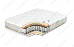 Ортопедический матрас Элит-рельеф-2 оснащен системой аэраторов, отвечающей за естественную вентиляцию внутри товара, и блоком независимых пружин, распределяющих нагрузку по поверхности равномерно. Подобное снижает вероятность проседания изделия, тем самым продлевая срок эксплуатации. В качестве наполнителей использованы латекс 7 зон, кокос и спанбонд. Благодаря им изделие получило важные характеристики: упругость, хорошая вентилируемость, устойчивость к негативному воздействию влажности, перепада температур.
